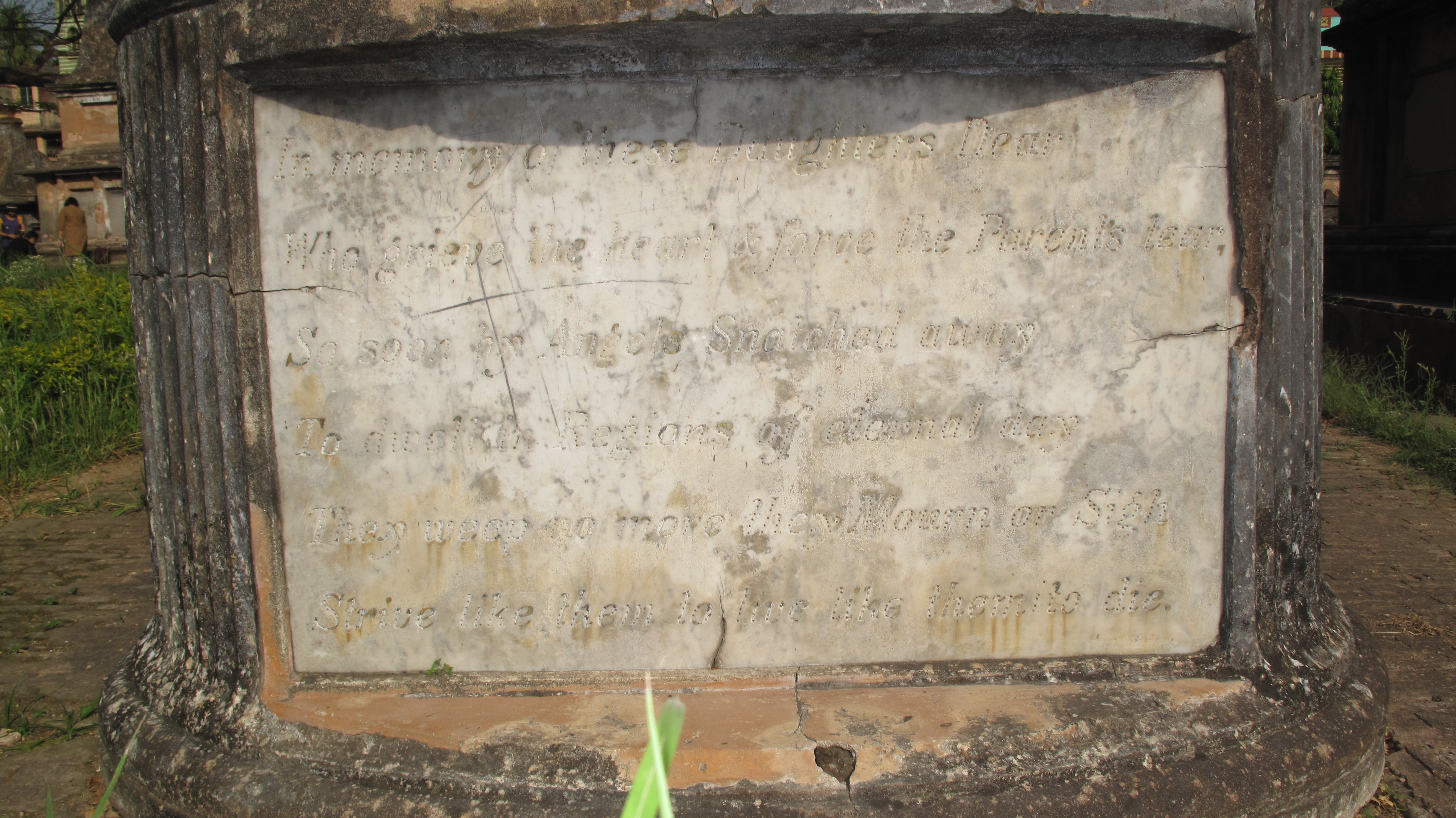 Aged 22 Years. On the side- The early exit of these Daughters dear, May swell the heart and force the parents tear, But when by Angels called and snatched away, To dwell in regions of eternal day, No more they weep,no more they mourn or sigh, But strive like them to live,like them to die. "