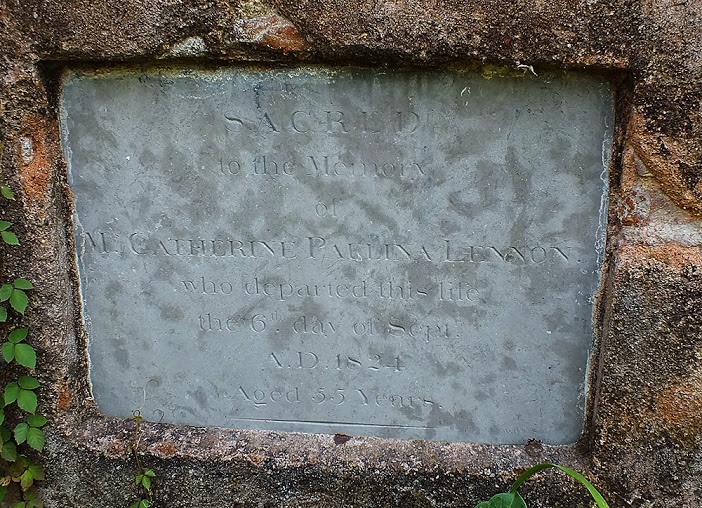 Sacred to the memory of Mrs. Catherine Paulina Lennon who departed this life the 6th day of September, A.D. 1824 aged 55 years.