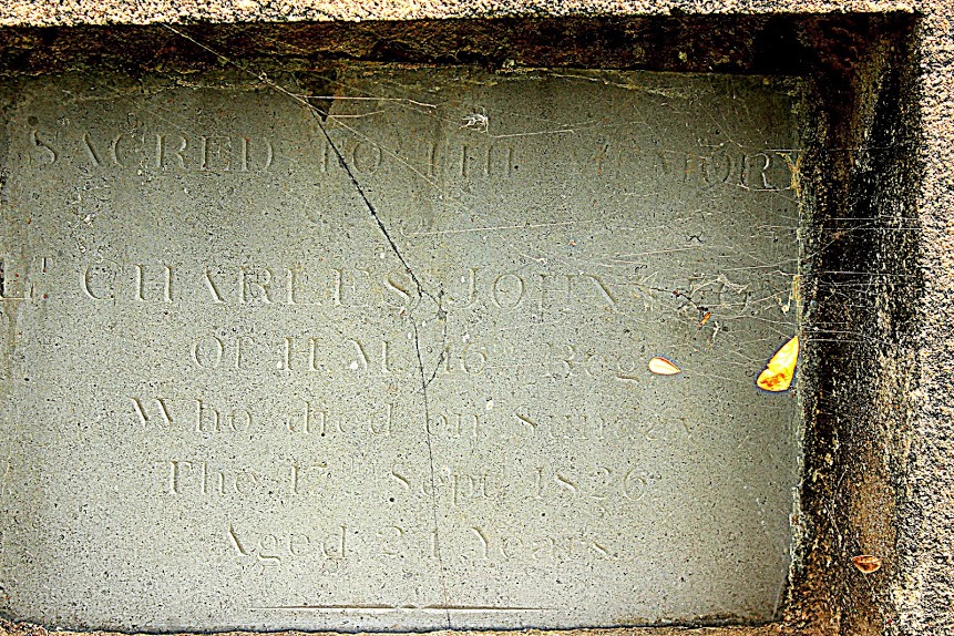 Sacred to the memory of Lieut. Charles Johnstone, H.M. 46th Regt. who died on Sunday the 17th Sept. 1826, aged 24 years.