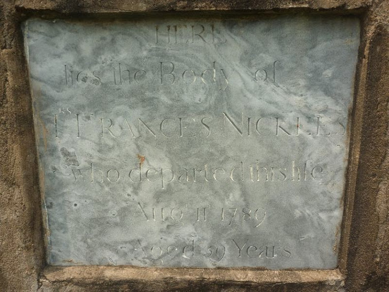 Here lies the body of Mrs. Frances Nickees who departed life the 11th of August 1789
