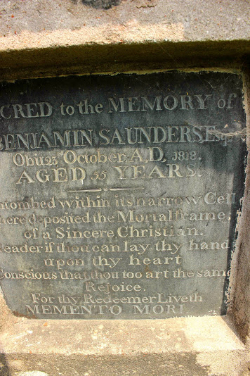 Benjamin Saunders Esq.,obit 23 October AD 1818. Aged 55 yrs.