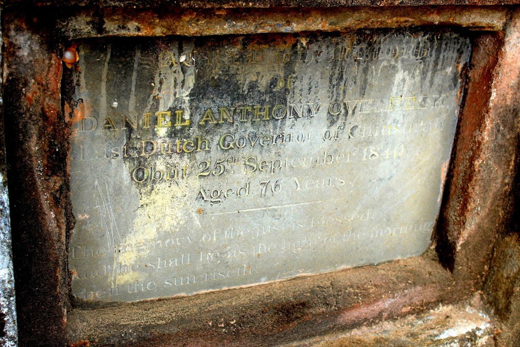 After his term as the last Dutch governor, D.A. Overbeck stayed on as a private citizen in British-occupied Chinsurah after the secession of the Dutch rule. He is mentioned in Mesrov Seth's The History of Armenians in India as having laid the foundation stone for the steeple of the Armenian Church in Chinsurah. He is also recorded as having deposed before the British court in the matter of establishing the identity of the Maharajah of Burdwan (the 'Pertaub Chand' case). As governor, Overbeck also famously donated drums and a silver idol of Shiva to the Sandeshwar temple in Chinsurah.
