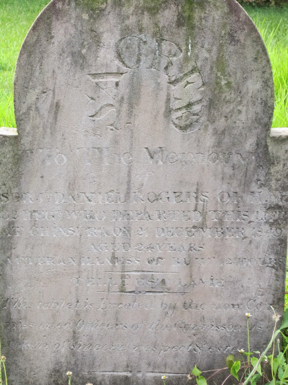 Sacred to the memory of Sergeant Daniel Rogers of the HM 32nd regiment who departed this life at Chinsurah on 21st December 1849, aged 24 years, after an illness of but 42 hours. "Telle e'st Lavie" This tablet is erected by the non-commissioned officers of the garrison as a token of sincere respect and esteem.