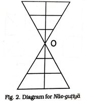 This game was also recorded by Charu Chandra Das Gupta. The information was given to him by a staff of the Nalanda Museum as well as from another inhabitant of Kumrahar, a village near Patna. The game is called Nao-Gutiya or nine pieces and it is a two player game. Das Gupta in his essay draws similarities of this game with another boardgamec called Egara-guti or eleven pieces. Thgis game also has similarities with Lau-Kata Kati which is played in several parts of India. -