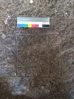 This Bagh Chal board has been recorded from the pillared halls of the main cave in the second row facing the main shrine of the cave site of Pataleshwar. Bagh Chal or Tigers and Goats is an ancient hunt game that has been popular in many regions of the world. The board of Bagh Chal is part of the alquerque family which traces its history to the Moors of Spain in their Libro de Los juegos (book of games) commissioned by Alfonso X in the 13th century. Although the rules were first found there, the history of alquerque goes further back to Egypt and to a name mentioned in the Kitab-al-Aghani (book of songs) as Kirkat or Al-Kirkat. Besides reference in literature similar game boards have been found both in practice amongst players in various communities as well as in archaeological sites. Bagh Chal has many variants, and is known by different names all over India, Nepal, Bhutan and other countries of South Asia. The structure of the board, the number of pieces and the variants in the rules may vary from place to place but the intention of winning remains the same. It is a two-player game where one individual represents the tiger and the other represents the goats. The number of tigers vary from one to even five in some games while the number of goats can be twenty or less or more depending on the structure of the board and the rules popular to the region. Pataleshwar cave complex are a small group of five excavations, developed into a cave temple dedicated to Pataleshwar, God of the underworld or Shiva. This cave complex is ruggedly excavated and also bears resemblance with the Elephanta caves of Mumbai. The cave has unfinished murals on the sides and on the backside. There is a Nandi pavilion at the entrance of the cave which is circular. The inside of the main cave contains a pillared hall with a pradakshinapatha the way to go around the shrine. One side of the cave remains unfinished. This and other boardgames were documented on the floor of the cave. -