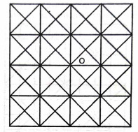This game was documented by Charu Chandra Das Gupta in Kumrahar, in Bihar. It is played by two players each having twenty pieces. The central point marked O is left vacant. The method of playing this game is exactly similar to that of the game called Ram-tir also documented in the essay. The main point of interest regarding this game is that in each of the sixteen small square courts there is a cross-point in the centre which is occupied by a piece. On each side there are such eight cross-points on which each player places eight of his twenty pieces. -