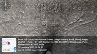 This etched or incised graffiti board of Chaupar is located right at the entrance of the cave temple of Pataleshwar. The chaupar board here has arms of 27 cms each with a floral design in the middle square or the central home square. Pataleshwar cave complex are a small group of five excavations, developed into a cave temple dedicated to Pataleshwar, God of the underworld or Shiva. This cave complex is ruggedly excavated and also bears resemblance with the Elephanta caves of Mumbai. The cave has unfinished murals on the sides and on the backside. There is a Nandi pavilion at the entrance of the cave which is circular. The inside of the main cave contains a pillared hall with a pradakshinapatha the way to go around the shrine. One side of the cave remains unfinished. This and other boardgames were documented on the floor of the cave. According to anthropologists K. Ravi and Jaya Sankar Rao and the classification of HJR Murray in his book, The History of Boardgames Other Than Chess, Chaupar is categorised as a race game. The first description of this game seems to have been written in the 16th century, when chaupar was a common gambling sport at the court of the Mughal emperor Akbar in Agra and Fatehpur Sikri. Abul Fazl describes how the game is played with sixteen pieces, three dice, and a “board” in the shape of a cross. It is typically a four-player game and the pieces belonging to each player is distinct from the others. It is played with four pieces and a throwing of either cowrie shells or two oblong dice. There are various terminologies used for the safe squares, or the throws which differs from one region to the other. For example, in Haryana the central home which is a flower here is called 'charon ka ghar'. Interestingly, it can be played by a throw of six cowrie shells or even more depending on the variant. As this etched board is from Maharashtra, it is difficult to understand the exact throw of dice or cowries used or the rules made to play this game.