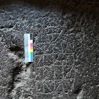 - Graffiti board game engraved/excavated on basalt rock floor.