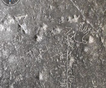 Pataleshwar cave complex are a small group of five excavations, developed into a cave temple dedicated to Pataleshwar, God of the underworld or Shiva. This cave complex is ruggedly excavated and also bears resemblance with the Elephanta caves of Mumbai. The cave has unfinished murals on the sides and on the backside. There is a Nandi pavilion at the entrance of the cave which is circular. The inside of the main cave contains a pillared hall with a pradakshinapatha the way to go around the shrine. One side of the cave remains unfinished. This image showcases three holes of Mancala incised and what looks like attempts in curating rows of mancala to make a board on the floor. Another speculation could be that there was a board which eroded with time and lack of preservation of the rock floors. There are a total of eight mancalas recorded from Pataleshwar along with other boardgames.