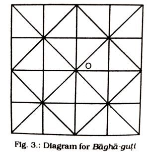 - This boardgame has been recorded by Charu Chandra Das Gupta and the information has been given by a staff of the Nalanda Museum in Bihar. This game as described by Das Gupta, is a two player game with twenty one pieces placed together in the central point marked as O and another piece placed as the 'tiger' which can be placed at any cross point at the starting of this game. He also states in his essay that this game is played differently than the games whose board look similar to this one.