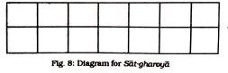 This game has been documented by Charu Chandra Das Gupta and the information initially was given by a staff of the Nalanda Museum in Bihar. Although Das Gupta could not understand the rules of this particular game himself, he still describes it as a two player game. He further draws similarities of Sat-Gharoa with another game played by the Khasis (Meghalaya) and also in Orissa and Madras.
