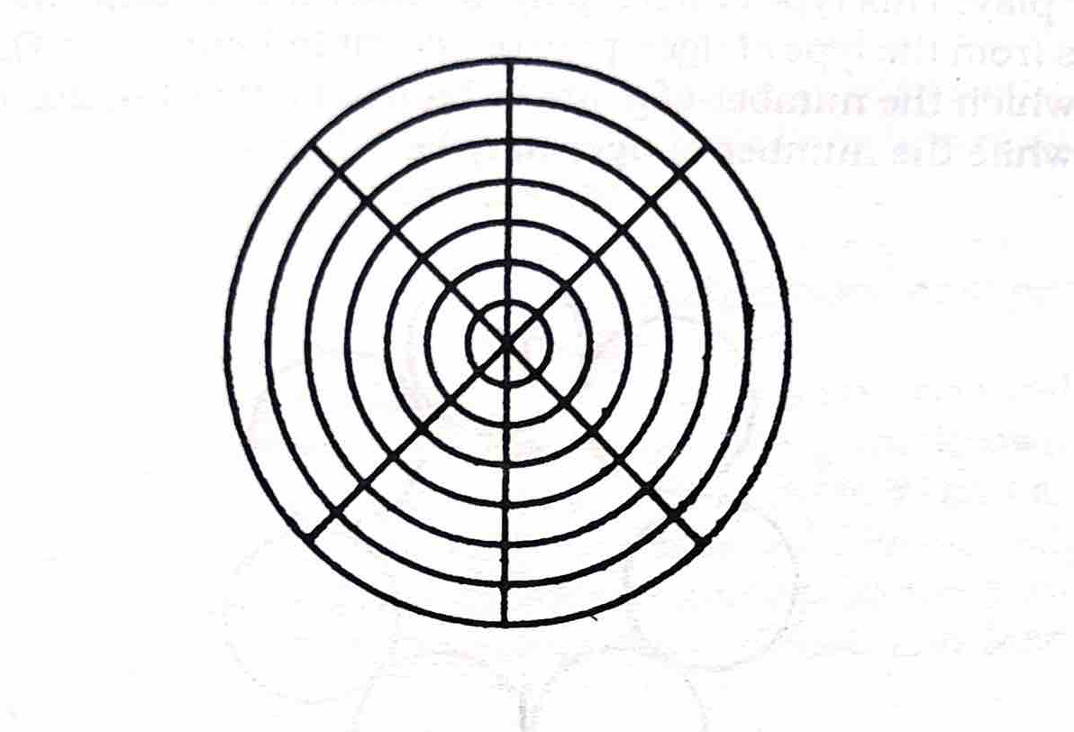 This game was recorded by Hem Chandra Das Gupta and the information was collected during one of his field visits to Gosalpur in the district of Jubulpur, in present Madhya Pradesh. As shown in the image seven concentric circles with three diameters are required for playing this game, the diameters meeting the circles at 42 points. It is a two player game, and each of them provides himself with 21 pieces which are placed at the 21 cross-points arranged along 3 consecutive radii.