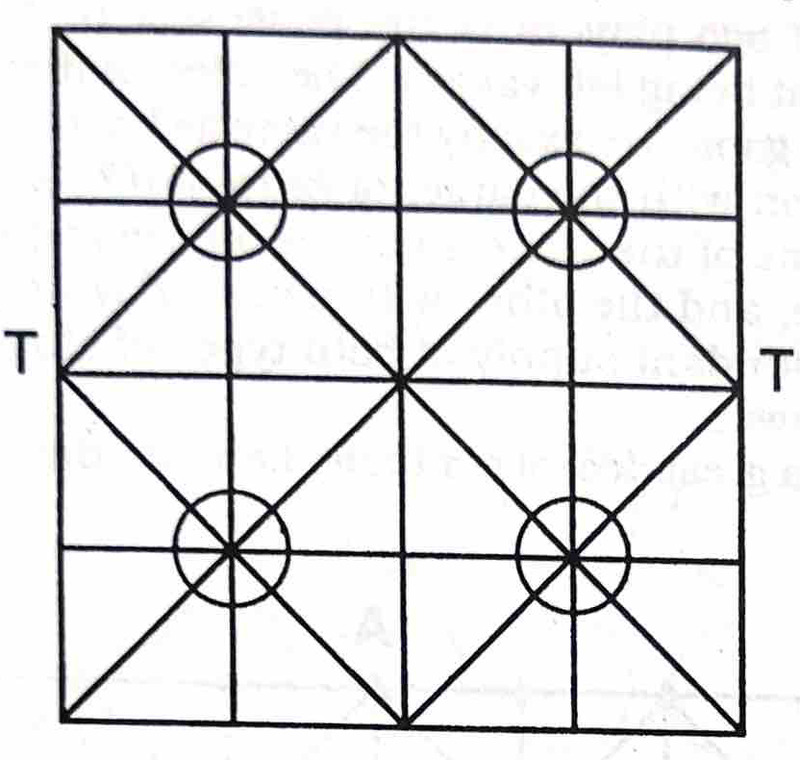 As all types of tiger play the goats and the tiger may usually be moved from one cross point to that lying next to it, except in the case where a tiger may jump over a crosspoint with a goat on it and capture the goat, the cross-point next to the goat and in the same line being vacant.