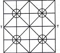 The game of bagh-batti (bagh or tiger and batti or piece) is a type of tigers and goats or bagh chal played by two people, one of whom is the possessor of two pieces representing two tigers and the other of twenty pieces or battis. There are many variants of Bagh Chal found all across India. It is a hunt game which is also popular in Nepal and sources also show a variant of Tagnor being played in Bhutan. It is an alquerque game and all the variants require two people to play.