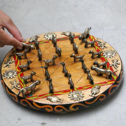 - Bagh Chal is played on an alquerque board by two players. One has four tigers, while the other has twenty goats. The tigers need to jump over and eat five goats whereas the goat needs to corner all the tigers to win. The game is the national game of Nepal and exists in multiple variations all over South Asia. There are multiple variants of the game across South Asia.