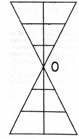 Lau Kata Kati is played on an hourglass-shaped board. Lines indicate permitted moves. Each player selects 9 pieces or beads. The pieces are placed on the intersections of the triangle closets to the player, leaving only the middle point empty.