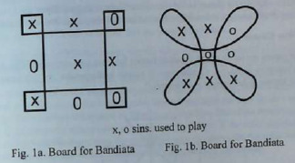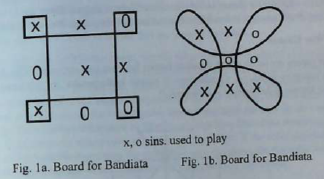 - This is a two player game. According to Kulirani and Vijayendra this game is known as bandiata in the districts of nothern Karnataka. Bandi means cart which adds to the meaning of a bullock cart or vehicle while ata means play in Kannada. The board is usually drawn or sketched on the ground with a piece of chalk or is even drawn on paper with a pen.