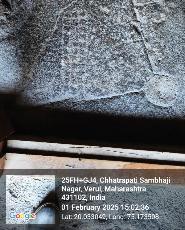 The The Jagannatha Sabha is considered to be the second largest Jain Cave at Ellora dating back to the 9th century AD, according to the inscriptions on its pillars. This cave is popular for its intricate carvings and it is two storied. It consists of twelve pillars and elephant heads towards a porch, all carved from a single rock. The hall has two heavy square pillars in front, four in the middle area, and a pillared interior square principal hall with fluted shafts, all intricately carved with capitals, ridges and brackets. Inside the major idols are of Parshvanatha and Mahavira, the last two tirthankaras in Jainism. This board has been documented at the entrance of the cave facing the pillared prayer hall. This cave was popular to be a part of the Digambara Sect.
