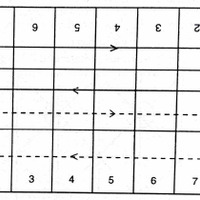 With the opening position shown above, white counters begin moving left to right, black counters begin right to left and all continue in boustrophedon movement throughout the board. Therefore, counters are moving parallel to one another rather than contrary or head to head.