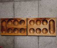 Mancala The game of Mancala is considered to be one of the oldest games of the world, while its place of origin and the timeline is debatable. The earliest textual reference as stated by scholars comes from Kitab al-Aghani, or Book of Songs which does not directly mention mancala but refers to a similar game. These rows of cupules have also been excavated in ancient sites like Jordan and many others including megalithic sites in India but their link as to being Mancala is debatable. This game has many variants all across the world and is popular in Africa, Asia, and parts of Eastern Europe. In India, Mancala is known by many names and the rules and variants of the game keep changing based on its region and according to the communities who play them. The number of holes in mancala differ along with the number of rows as well. In some variants the board is hand-drawn on a surface as circles with chalk or even cut holes on the soil to play the game. It is played with local seeds, stones or anything which is easily available as pieces to place inside the pits. The number of pieces per pit also vary from four to even twelve in some variants. This game is popularly a two-player game but some variants also show three players or even one in some case.