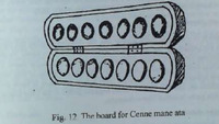 India has had many alternate names and variations in rules and strategies of the game. It is often played on a wooden board with depressions. Other times in some regions it is also played by drawing or cutting holes on the ground either on stone or slabs or even temporarily on soil. This game is played for long hours by women more than men and Cenne Mane is also played during the Ashada-Shravan months. It is a two player game, although some variants also mention three players or even one. The intention of winning the game depends on collecting maximum number of seeds or stones or pieces. The pieces are placed in the holes. In case of Cenne Mane, there are four seeds per pit. The game begins in an anti-clockwise direction. This game does not end in one round. There is a case of debts and borrowing that is also followed in some variants.