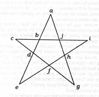 But there are some unique points of this game which are worthy of special notice. In all the variants of Bagh Chal or Tigers and Goats recorded, the tiger piece may jump over a cross-point occupied by a goat piece provided the cross-point next to it and in the same straight line is vacant and capture the goat piece. According to the rules of the game as prevalent in Shahpur, the tiger piece may capture the goat piece in this way, while it may also, for the purpose of capturing a goat piece, jump round the angle A either from 2 to 4 or from 4 to 2.